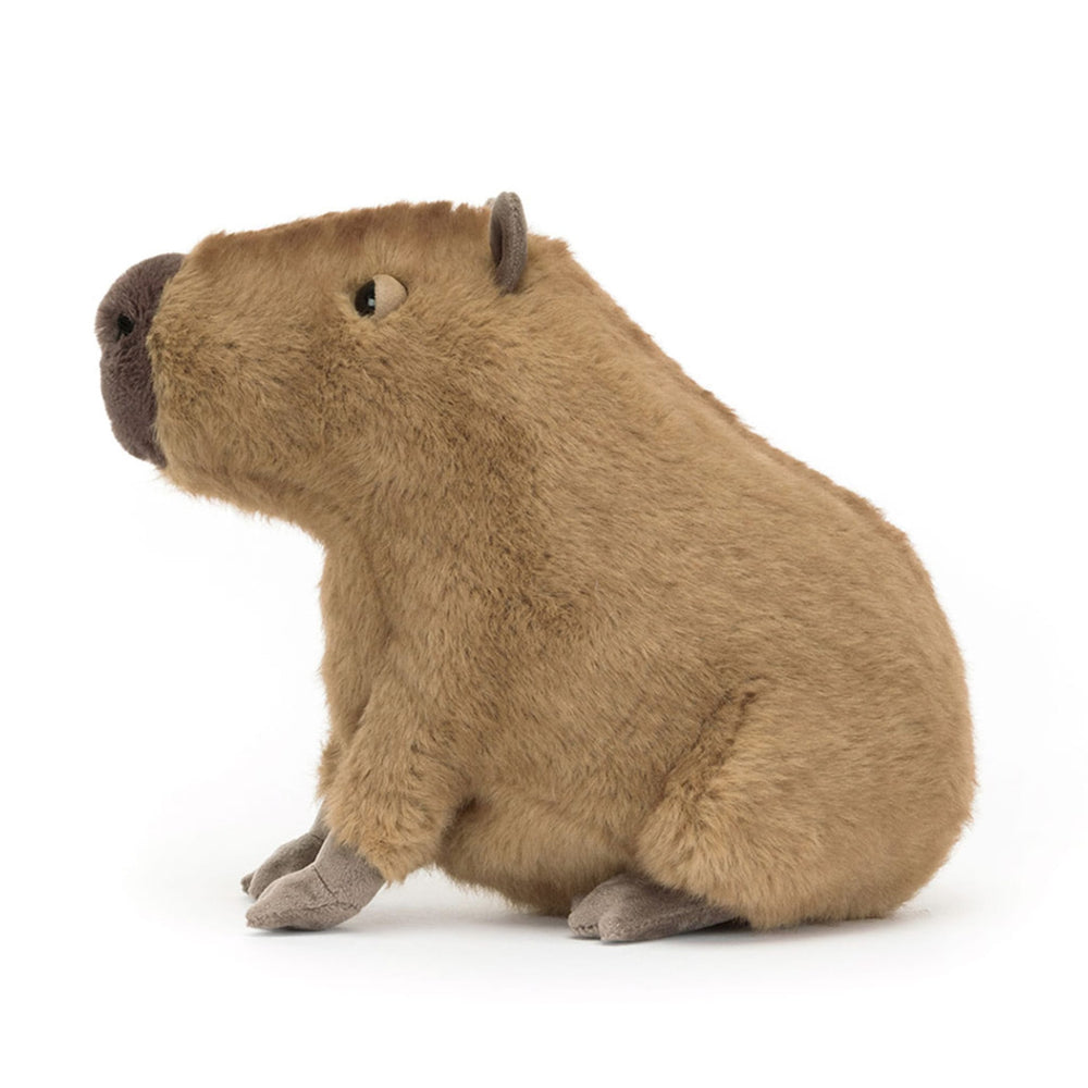 Clyde Capybara is chill and charismatic with a chunky tum, purple-brown snout and chocolate two-tone fur. With delicate claws, suedette ears, dreamy eyes and podgy haunches, Clyde calms any storm.