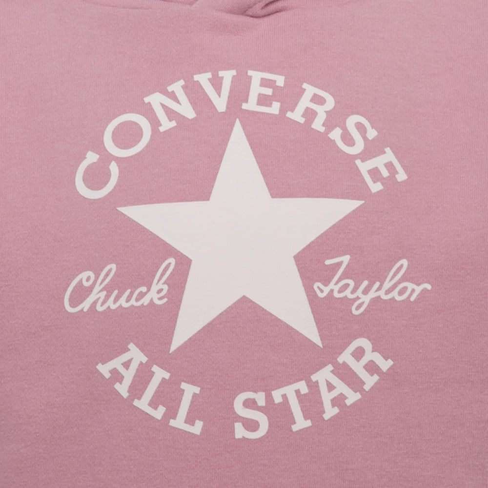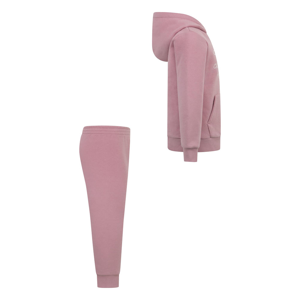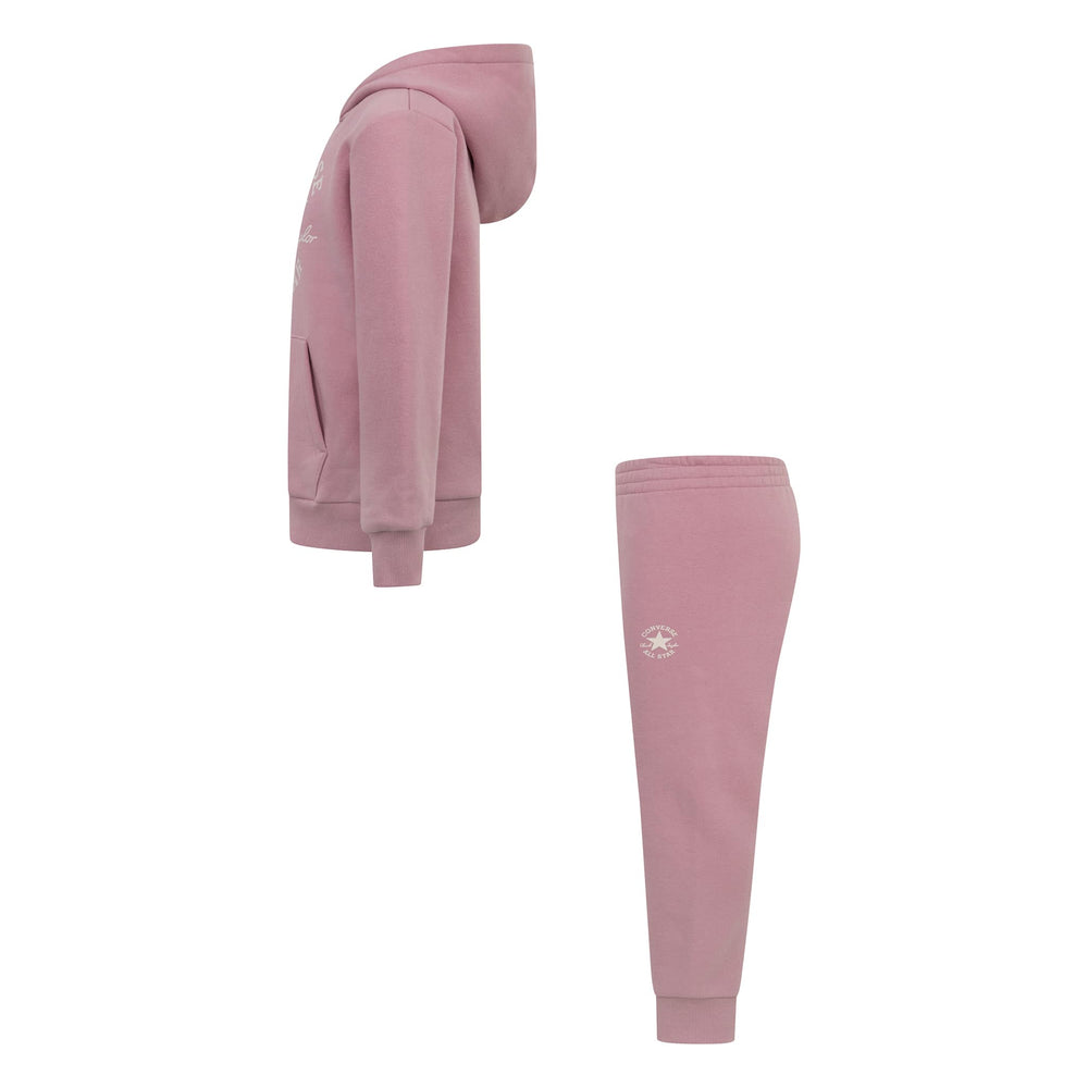 Effortlessly outfit little All Stars in this cozy fleece set from Converse. Featuring a large Chuck patch logo, the hoodie has a roomy cut that makes layering easy and the handy kangaroo pocket provides a spot to stash small items. The tapered pants have a stretch waistband and ribbed cuffs that provide a comfy, stay-in-place fit to keep up with kiddos at play.