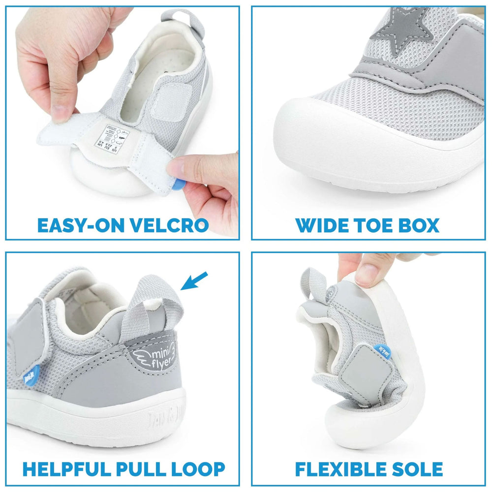 Wide toe cap: Adapts to growing feet for healthy development
