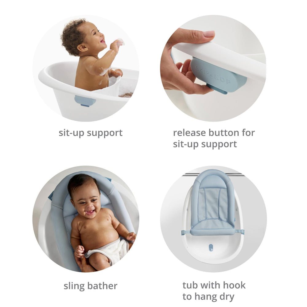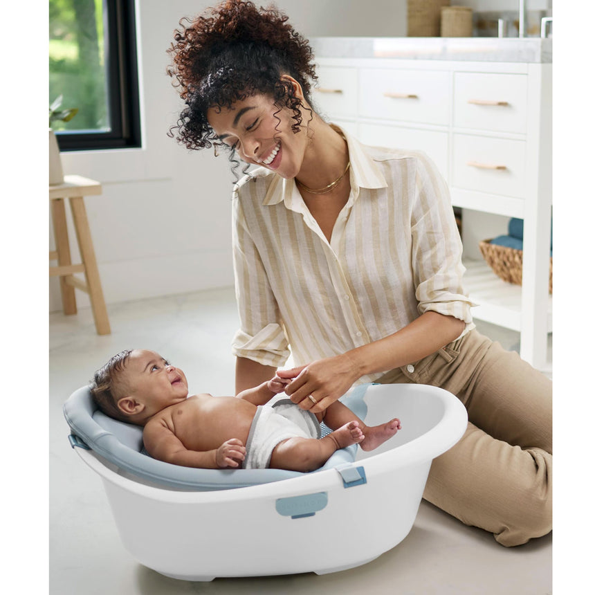 Designed to grow with baby in four stages—from infant to toddler—meet the only tub parents need! Filled to the brim with innovative details for baby’s comfort, our Wave 4-in-1 Baby Tub includes a supportive sling that can be used in two positions to help make infant bathing easier and less stressful for both parents and baby. As baby grows, remove the sling bather and add the included sit-up support insert to help little ones stay comfortably seated in the tub. Once your little one is able to sit up without support, use the tub on its own. The spacious, yet streamlined design features higher sides for extra splashing space (and extra tub time fun)!